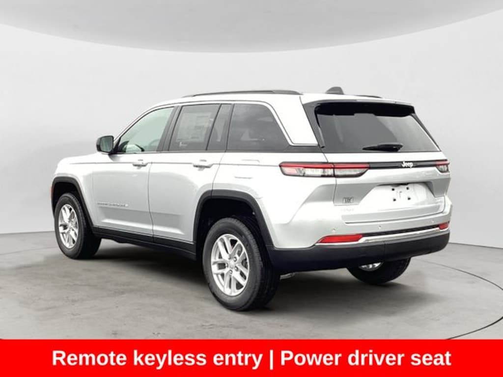 Silver 2025 Jeep Grand Cherokee Laredo X 4WD 8-Speed Automatic 3.6L V6 24V VVT 4WD, ABS brakes, Alloy wheels, Automatic temperature control, Compass, Electronic Stability Control, Emergency communication system, Four wheel independent suspension, Front Bucket Seats, Front dual zone A/C, Fully automatic headlights, Heated door mirrors, Illuminated entry, Low tire pressure warning, ParkView Rear Back-Up Camera, Power driver seat, Remote keyless entry, Traction control, Wheels: 17" x 6.5" Fully Painted Aluminum. Priced below KBB Fair Purchase Price!
