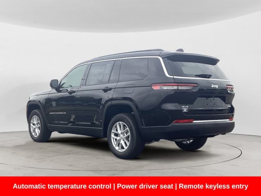Diamond Black Crystal Pearlcoat 2025 Jeep Grand Cherokee L Laredo 4WD 8-Speed Automatic 3.6L V6 24V VVT 115V Auxiliary Power Outlet, 3rd Row Charge-Only USB Ports, 3rd row seats: split-bench, Alloy wheels, Automatic temperature control, Four wheel independent suspension, Front Bucket Seats, Front dual zone A/C, Fully automatic headlights, Heated Front Seats, Heated Steering Wheel, Laredo X, Luxury Tech Group I, ParkView Rear Back-Up Camera, Power driver seat, Power Liftgate, Power Sunroof, Quick Order Package 23D Laredo X, Rain Sensitive Windshield Wipers, Remote keyless entry, Remote Start System, Selectable Tire Fill Alert, Steering wheel mounted audio controls, Telescoping steering wheel, Wheels: 18" x 8.0" Fully Painted Aluminum, Wireless Charging Pad. Priced below KBB Fair Purchase Price!