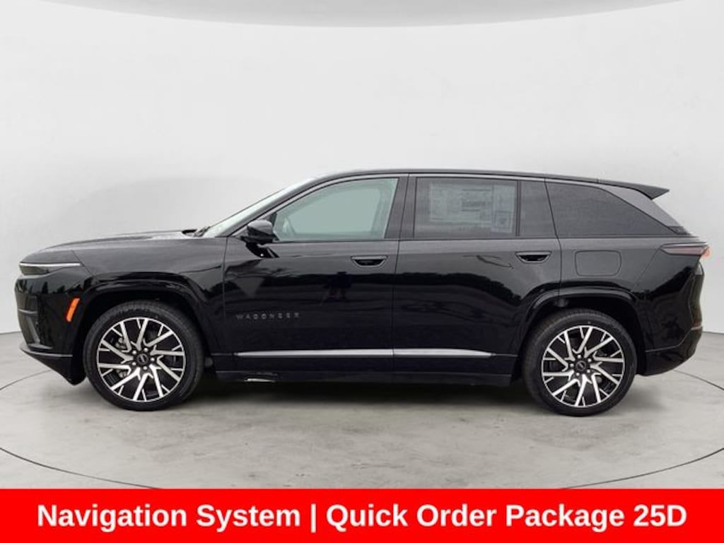 Diamond Black Crystal Pearlcoat 2025 Jeep Wagoneer S Limited 4WD 1-Speed Automatic Electric Motor 10 Speakers, Apple CarPlay/Android Auto, Auto High-beam Headlights, Auto-dimming door mirrors, Auto-dimming Rear-View mirror, Automatic temperature control, Dark Appearance Package, Dark Daylight Opening Upper, Four wheel independent suspension, Front Bucket Seats, Front fog lights, Fully automatic headlights, Garage door transmitter, Heated door mirrors, Heated front seats, Heated steering wheel, Heavy Duty Suspension, Memory seat, Navigation System, Neo Ultra Lux II Seats, ParkView Rear Back-Up Camera, Power driver seat, Power Liftgate, Power moonroof, Power passenger seat, Premium audio system: UConnect 5, Quick Order Package 25D, Radio: Uconnect 5 Nav w/12.3" Display, Rain sensing wipers, Remote keyless entry, Speed-Sensitive Wipers, Split folding rear seat, Steering wheel mounted audio controls, Telescoping steering wheel, Titanium Exterior Accents, Titanium Rear Fascia Applique, Titanium Upper Grille Applique, Turn signal indicator mirrors, Two Tone Paint Group, Wheels: 20" x 8.5" Painted Diamond Aluminum Design 1. Priced below KBB Fair Purchase Price!